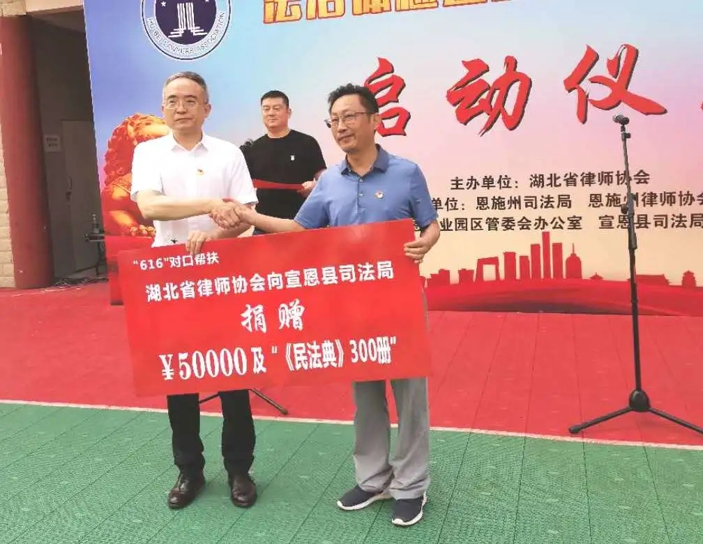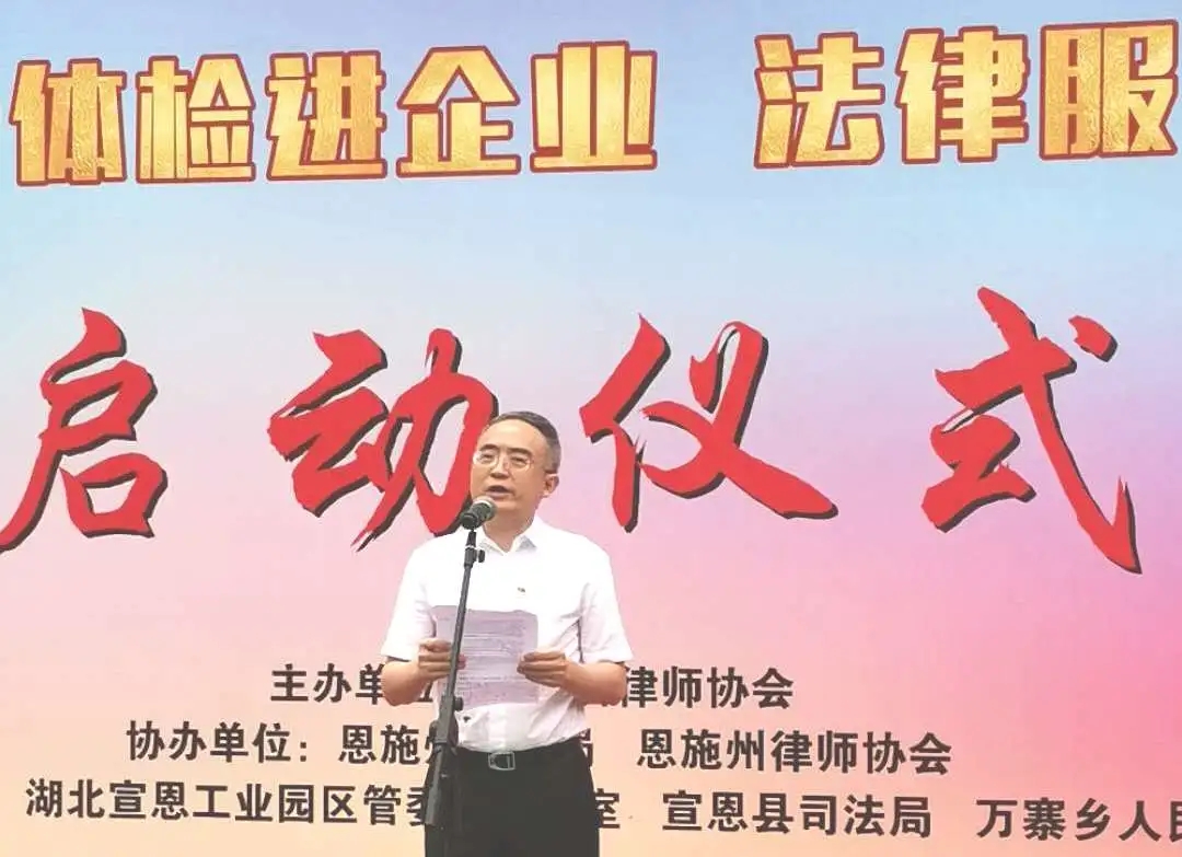 8月18日,由湖北省律师协会主办,恩施州司法局、恩施州律师协会协办,宣恩县工业园区管委会办公室、宣恩县司法局、万寨乡人民政府承办的“法治体检”进企业、法律服务进村居活动启动仪式在贡茶故里伍家台举行,现场11名律师、21家企业、200余名群众参加活动。