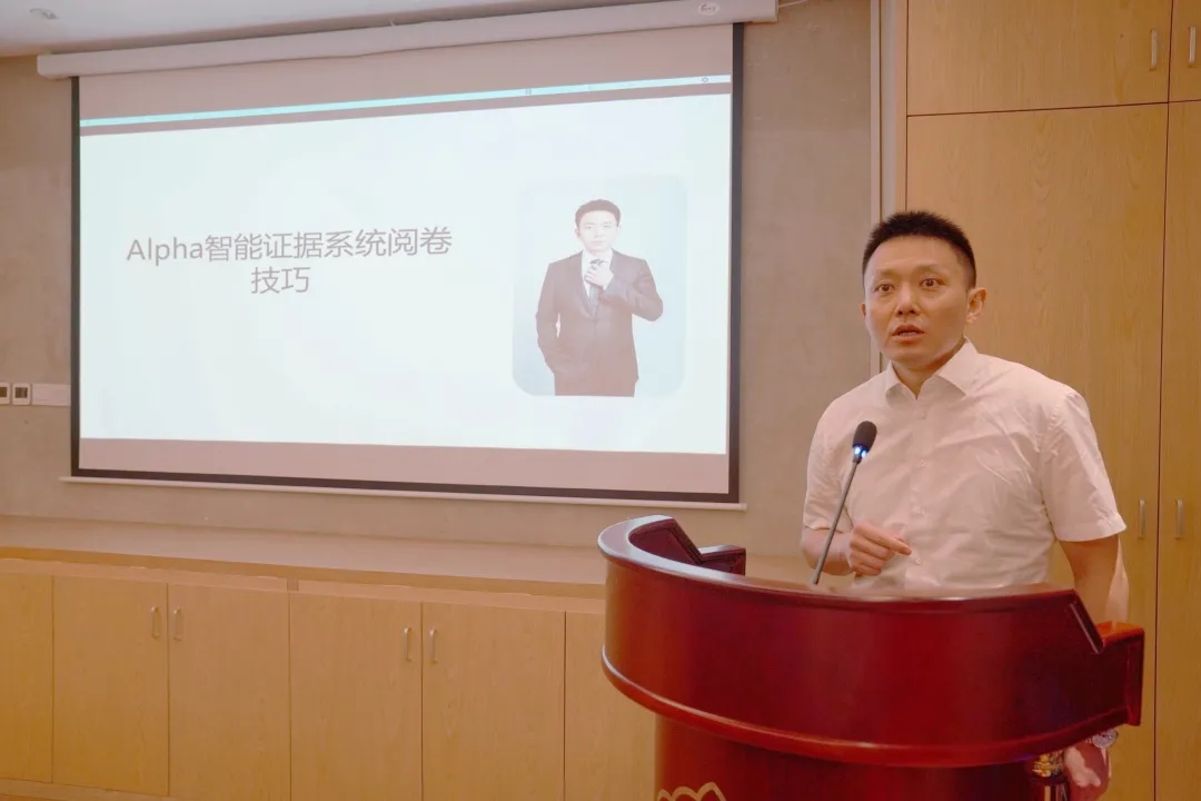 陈亮部长交流与分享了如何使用Alpha软件进行智能化阅卷。他指出,青年律师应勤学、善学、好学,紧跟时代与科技步伐,将智能化手段与传统阅卷技能相结合,实现“质”、“量”、“效”三者统一。