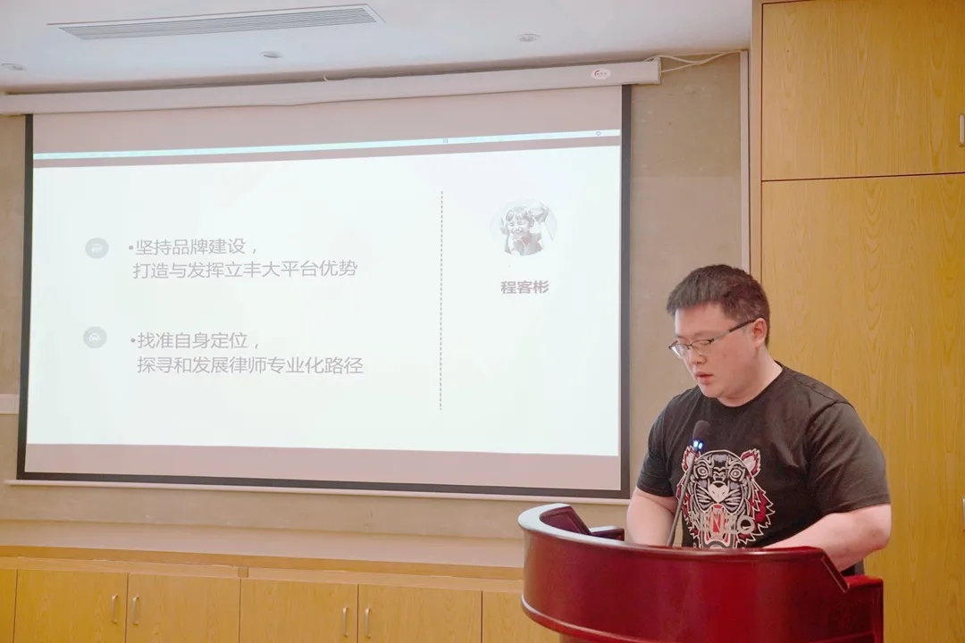 事业合伙人程客彬律师重点谈及了对“品牌建设”与“找准自身定位”的理解。他认为,青年律师走专业化道路的首要前提是夯实专业基础、修炼综合内功,进而找到自身的长板优势,并充分利用平台势能,以实现自身与律所的共赢。