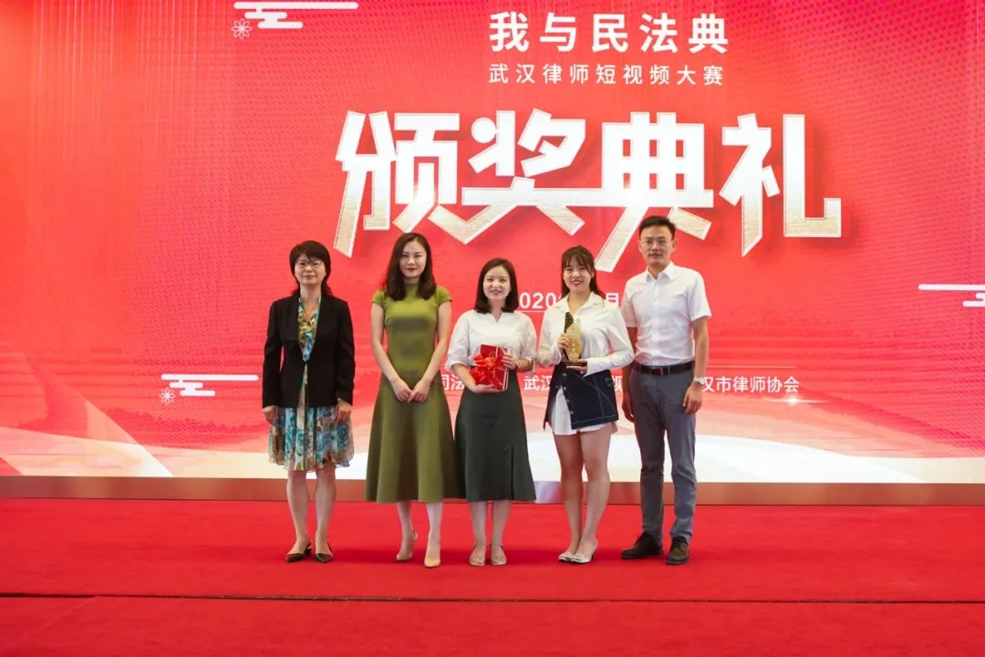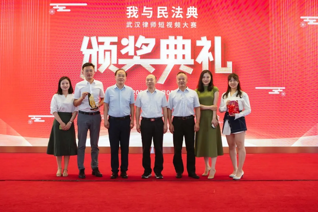 2020年9月5日上午,“我与民法典”武汉律师短视频大赛颁奖典礼在武汉广播电视台31楼会议厅举办。武汉市司法局党委书记、局长关太兵,武汉广播电视台党委书记、台长、董事长何伟,武汉市司法局党委委员、副局长、市律师行业党委书记聂德宗,中华全国律师协会副会长、湖北省律师协会会长岳琴舫,湖北省律师协会监事长蔡学恩、武汉市律师协会会长胡迎法及武汉市司法局、武汉电视台、市律律师协会领导,参赛律所及律师共计一百余人参加本次颁奖典礼。