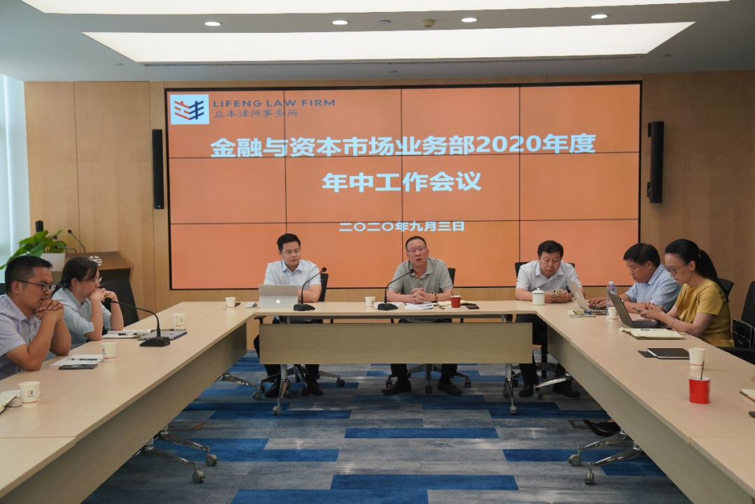 2020年9月3日下午14:30,湖北立丰律师事务所(以下简称“立丰所”)金融与资本市场业务部2020年度半年工作会议在18楼一号会议室成功召开。会议由事业合伙人、金融与资本市场业务部部长张小玮律师主持,除部门24位成员全体参会以外,立丰所首席合伙人、管委会主任汪少鹏律师受邀出席了本次会议。