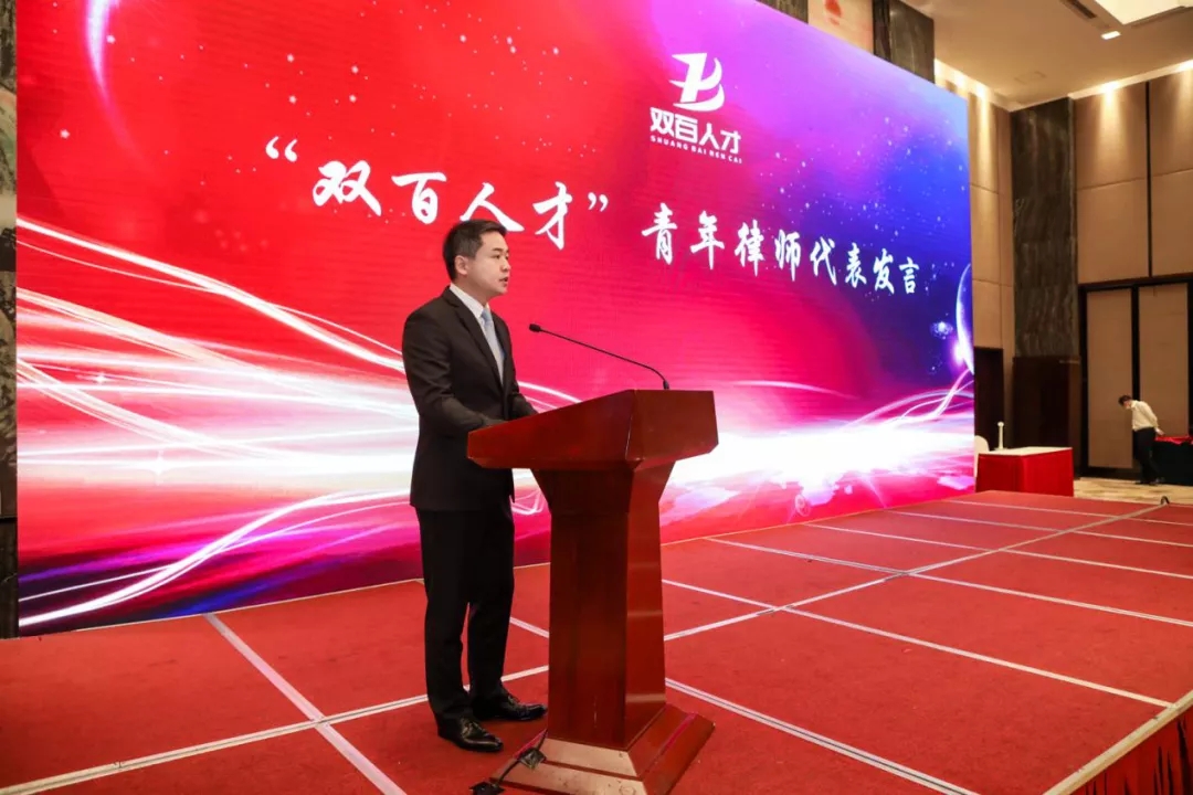 立丰所权益合伙人、管委会副主任刘勋律师作为武汉市律师协会青年工作委员会主任、首届“双百人才”青年律师代表进行了发言。