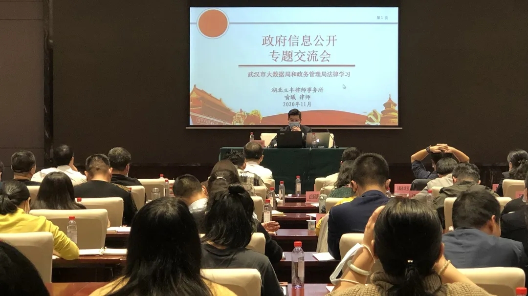 湖北立丰律师事务所事业合伙人喻曦律师作为武汉市人民政府办公厅、武汉市政务服务和大数据管理局、武汉市审计局法律顾问应邀参会,并以“政府信息公开——依申请公开”为主题为参会人员授课。