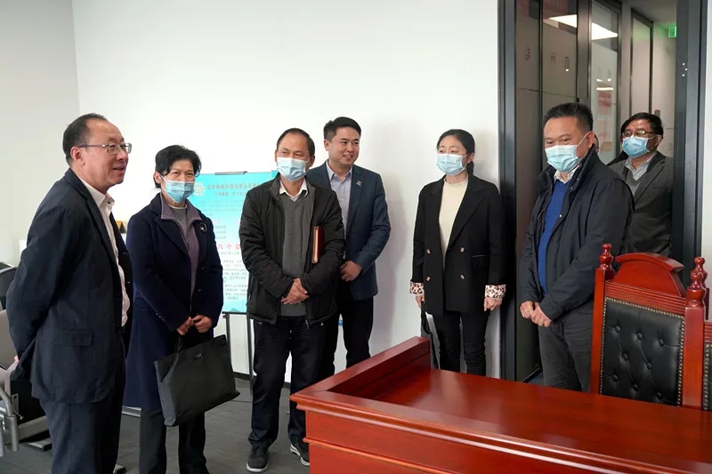 在汪少鹏的陪同下,林书记一行参观了立丰所办公环境,考察了立丰所党员活动室、立丰荣誉墙、模拟法庭等办公与文化建设场所,然后在立丰所1号会议厅进行了交流座谈。