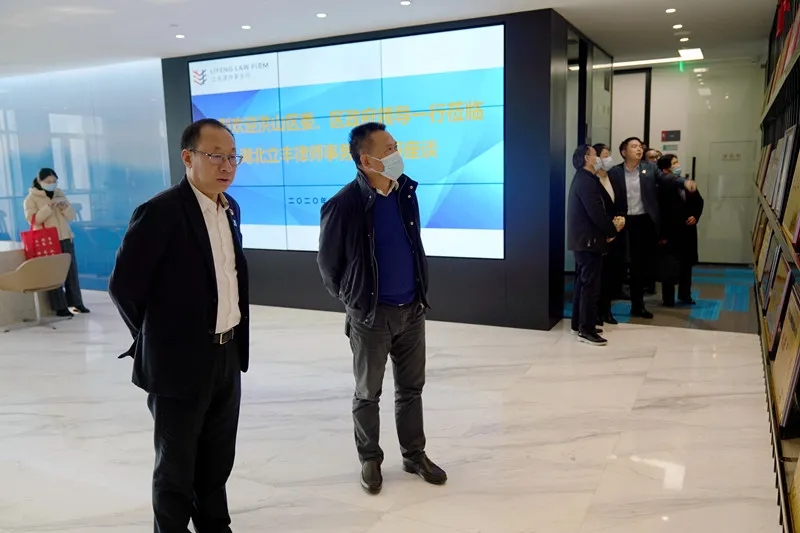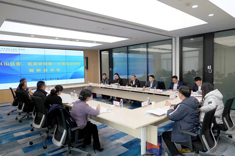 2020年11月30日15:00-16:30,中共武汉市洪山区委书记林文书,区委常委、办公室主任严湘桃,洪山区人民政府副区长陈敏,洪山区委组织部副部长、两新工委书记覃旭东一行莅临湖北立丰律师事务所(以下简称“立丰所”),就立丰所党建工作开展情况、发展现状及发展前景、参与基层社会治理情况等工作调研座谈。洪山区司法局党组书记、局长邓爱华等陪同调研。