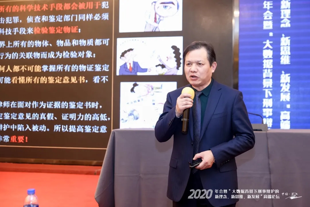 中南财经政法大学刑事司法学院院长、中南财经政法大学刑事辩护研究院院长、教授、博士生导师胡向阳发表了《以证据学为视角谈司法鉴定意见的质证》的主题演讲。他结合自己多年的教学与实务经验,从“鉴定意见形式内容的规范性”、“鉴定检材和样本的客观性、关联性”、“鉴定方法的科学性”、“鉴定依据和标准的科学性”等十大方面,讲解了司法鉴定意见的质证要点。他指出,司法鉴定意见的科学性将会随着社会、科技和法律的进步不断发展,辩护律师应当提升司法鉴定意见的质证能力,才能在刑事诉讼中占据更加主动的地位。