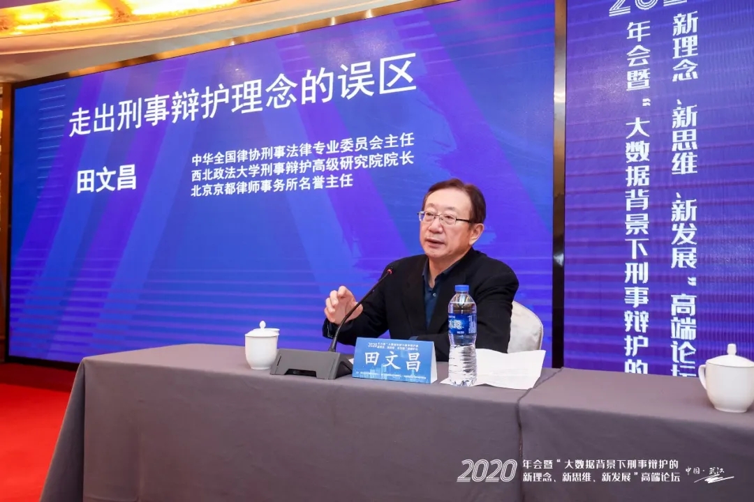 中华全国律师协会刑事法律专业委员会主任、西北政法大学刑事辩护高级研究院院长、北京大学、清华大学等院校兼职教授、北京市京都律师事务所名誉主任田文昌发表了《走出刑事诉讼理念的误区》的主题演讲。他指出,法律人走出刑事诉讼的误区最重要的是不断更新滞后的法律理念,并结合近年来倍受关注的刑事案件阐述了“实事求是与无罪推定”、“不枉不纵与疑罪从无”、“法律真实与客观真实”、“打击犯罪与保障人权”之间的逻辑冲突,认为只有厘清上述逻辑关系并正确认识“律师制度的价值追求”,才能形成真正的法治思维。