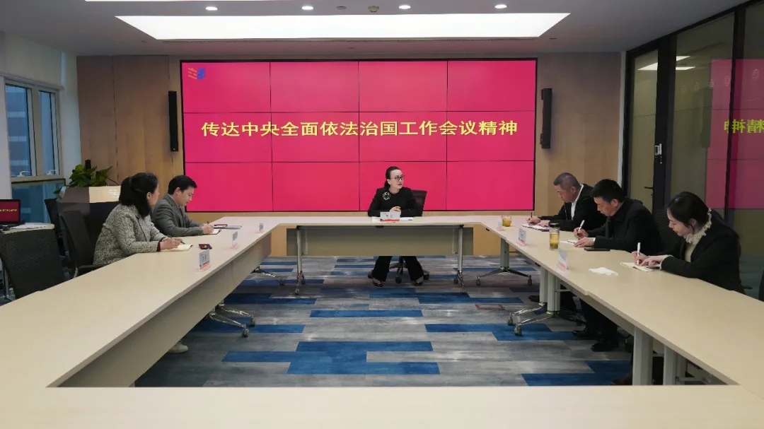 首先,由党总支部书记易卉同志向与会人员传达本月16日至17日在北京召开的中央全面依法治国工作会议精神,着重强调了习近平法治思想的重要性,且逐一就习近平总书记对当前和今后一个时期推进全面依法治国要重点抓好的工作提出的11个方面的要求进行说明。