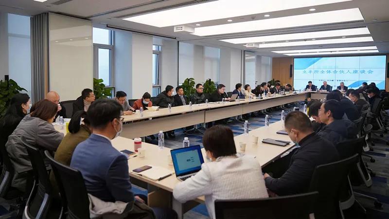 2021年1月23日9:00-12:00,湖北立丰律师事务所(下简称“立丰所”)全体合伙人座谈会在律所18层会议厅举行,共计有55名各类合伙人(权益合伙人、事业合伙人、普通合伙人)参加。本次会议上,主要由权益合伙人集中听取事业、普通两级合伙人的意见与建议。会议由立丰所权益合伙人大会首席合伙人、战略发展咨询委员会主任汪少鹏主持。