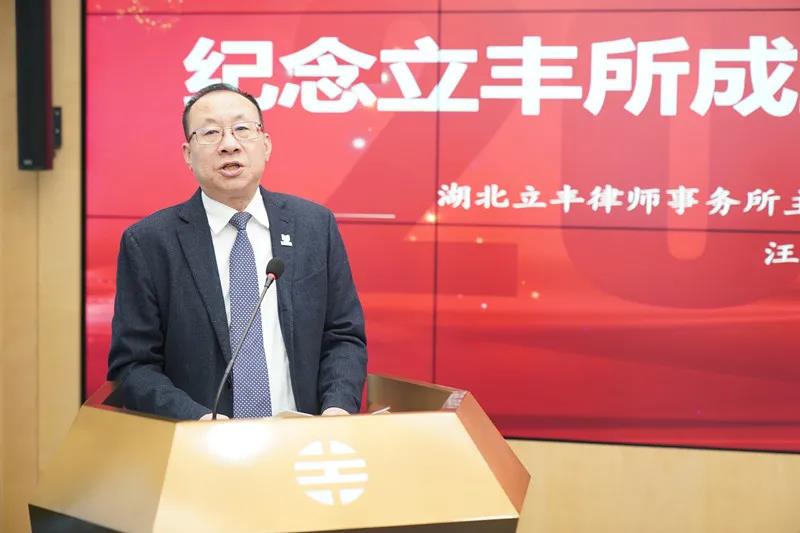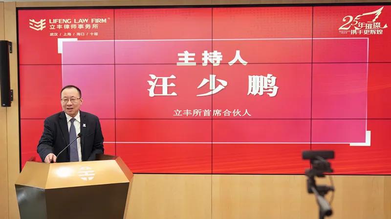 立丰所首席合伙人、战略发展咨询委员会主任汪少鹏发表了纪念立丰所成立25周年的讲话。他首先向长期以来关心、支持立丰所发展的社会各界人士及立丰同仁表示了衷心感谢。他指出,立丰所25年的稳定发展主要得益于: