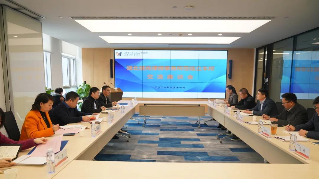 2021年3月10日下午,湖北楚尚律师事务所(以下简称“楚尚所”)主任张靓及党支部书记付凤鸣、副书记徐佳俊、执行主任周阳、刑事部主任万军、职务犯罪事务部主任邓萱一行6人,到访湖北立丰律师事务所(以下简称“立丰所”)并在18楼1号会议厅进行座谈交流。立丰所权益合伙人、主任刘勋和权益合伙人、党总支部书记易卉与管委会执行主任周宏力、监事会主席汪后新、研究院院长占传德以及行政部部长王晶参加座谈交流。