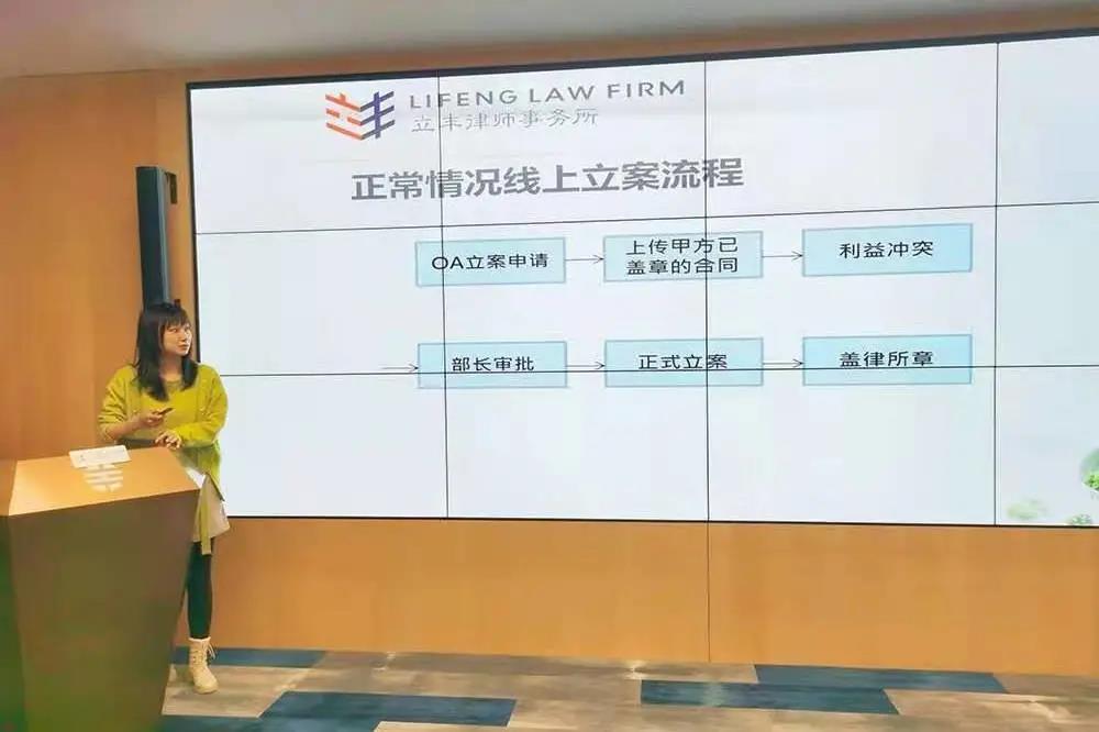 为响应立丰所2021年立案、结费流程新规,民商事法律业务一部组织由部门秘书胡鑫鸿为大家讲解了关于线上立案及线下立案流程、文本格式的更新以及开票结费问题,并与律师充分交流了立案过程中遇到的各种特殊情况,解答了相关疑问,规范了律师立案流程。