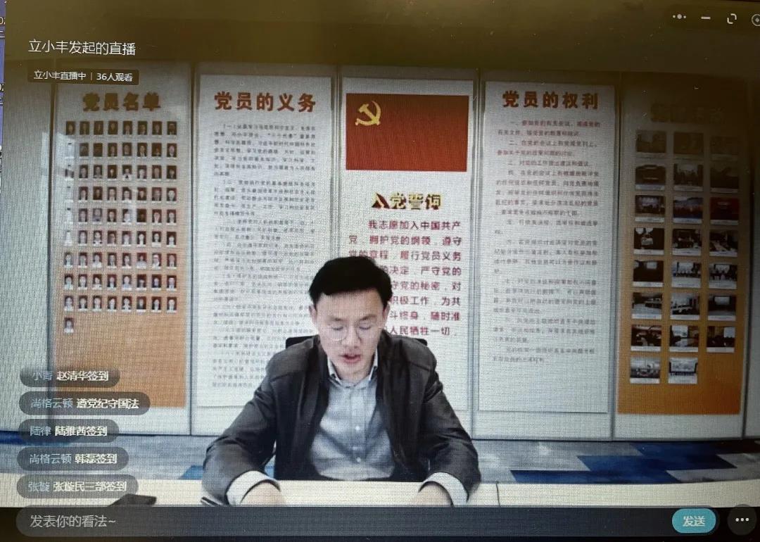 此次会议采用线上直播形式进行,全体党员同志、入党积极分子在直播间留言签到。