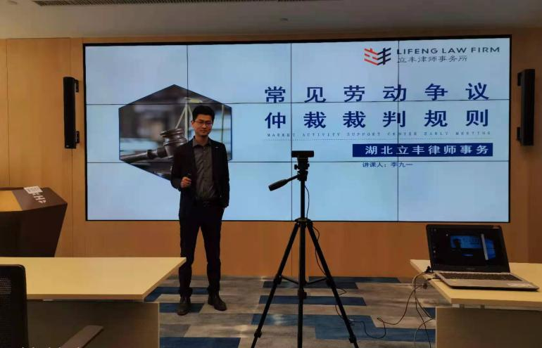 本次活动由湖北立丰律师事务所合伙人、武汉市总工会劳动法讲师、劳动仲裁委员会兼职仲裁员李九一律师为大家带来的《常见劳动争议问题及仲裁裁判规则》的实务经验分享。湖北立丰研究院成员及事务所青年律师均积极参加。此外,本次活动还进行了同步线上直播,其他同仁和客户也参加了线上学习。