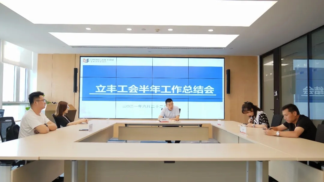 2021年6月23日16:00点,湖北立丰律师事务所(以下简称”立丰所”)工会在律所18楼1号会议厅召开了2021年度半年工作总结会。会议由事业合伙人、工会主席何炼高主持,工会副主席、行政部部长、王晶,合伙人、委员许超、尤艺,行政专员、委员汪厚刚出席了会议,事业合伙人、工会副主席罗梦婕和委员何仁杰因事请假。本次会议旨在总结上半年工作并部署安排下半年工作。