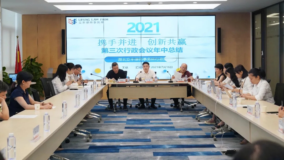 2021年7月16日上午9:30-12:30,湖北立丰律师事务所(以下简称“立丰所”)行政团队2021年度半年工作总结大会在事务所18楼号会议厅召开。立丰所权益合伙人、律师主任兼管委会主任刘勋,权益合伙人、执行主任周宏力、操小虎,以及行政部、财务部、各部门秘书共计21人参加了会议,权益合伙人、监事会主席汪后新,监事会副主席邵华列席本次会议。