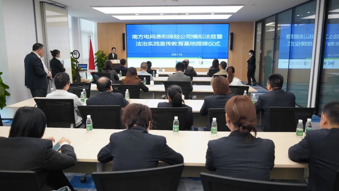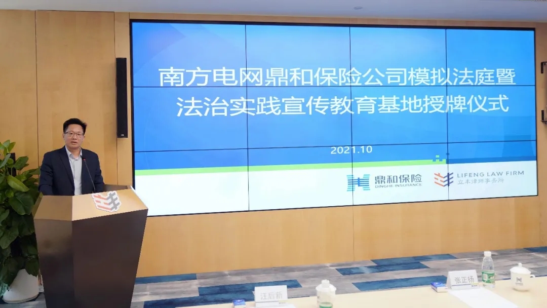 金菊竞放,桂花飘香,2021年10月13日上午9时,南方电网鼎和保险公司主办、湖北立丰律师事务所民(下称“立丰所”)民商法律业务三部协办的“南方电网鼎和保险公司模拟法庭暨法治实践宣传教育基地授牌仪式”活动如期顺利举行。