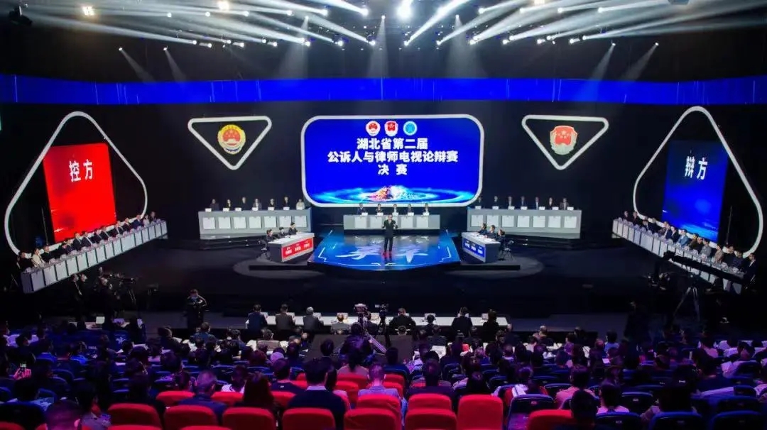 由湖北省人民检察院、湖北省司法厅、湖北省律师协会共同主办的“湖北省第二届公诉人与律师电视论辩赛”于2021年10月26日15:00在湖北广播电视台演播厅正式打响。