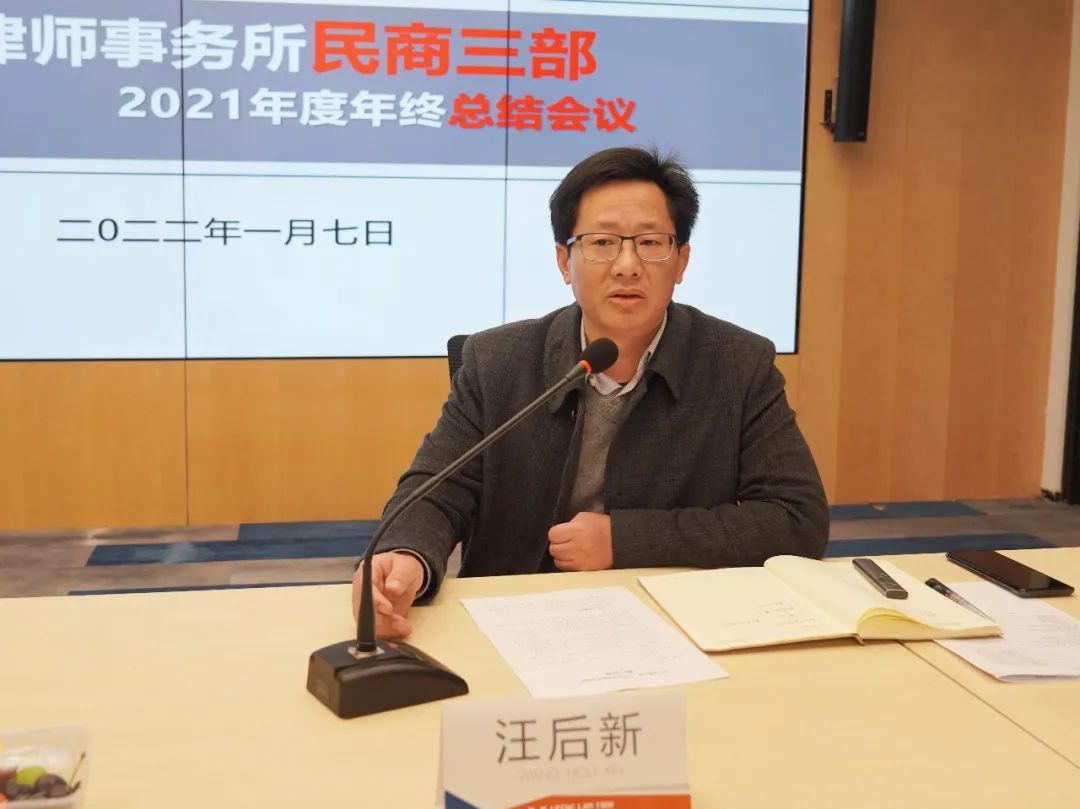 会议第二单元,首先由部长汪后新作2021年度工作报告,他详细汇总梳理了历年来部门成员在业务发展、学习研讨、社会活动等方面的情况,并对2021年度的部门情况进行重点介绍。他指出民商三部对立丰所及各分所未来的建设发展作出了贡献,并提出对律师行业团队建设方面的思考。