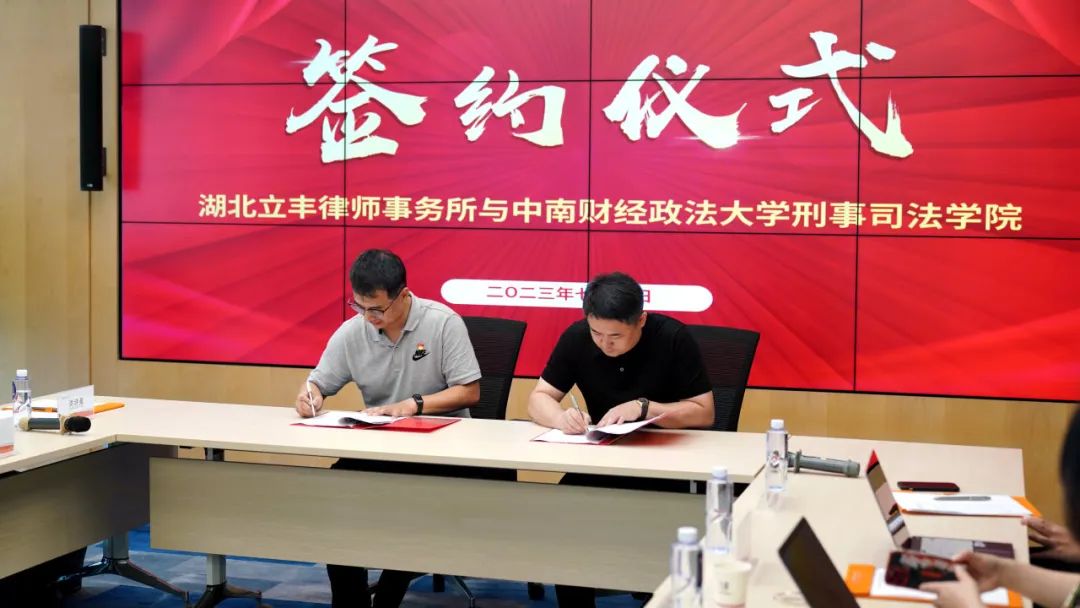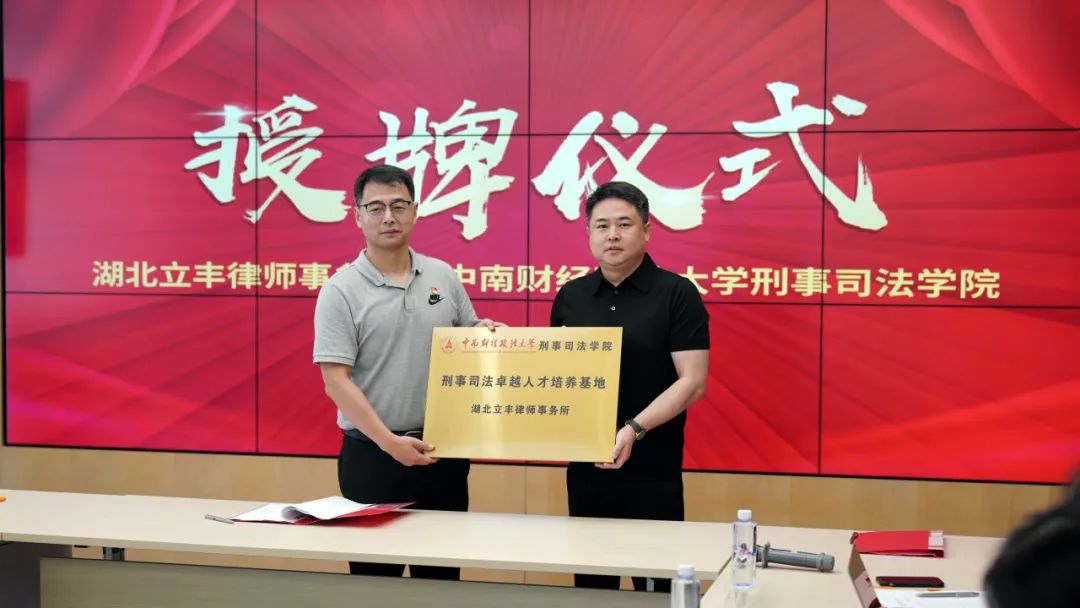 随后,双方共同签订了“刑事司法卓越人才培养基地协议书”,并由郭泽强副院长代表中南财经政法大学刑事司法学院向湖北立丰律师事务所授予“刑事司法卓越人才培养基地”牌匾。双方均表示,希望通过良好的校企合作以实现共同发展、合作双赢。