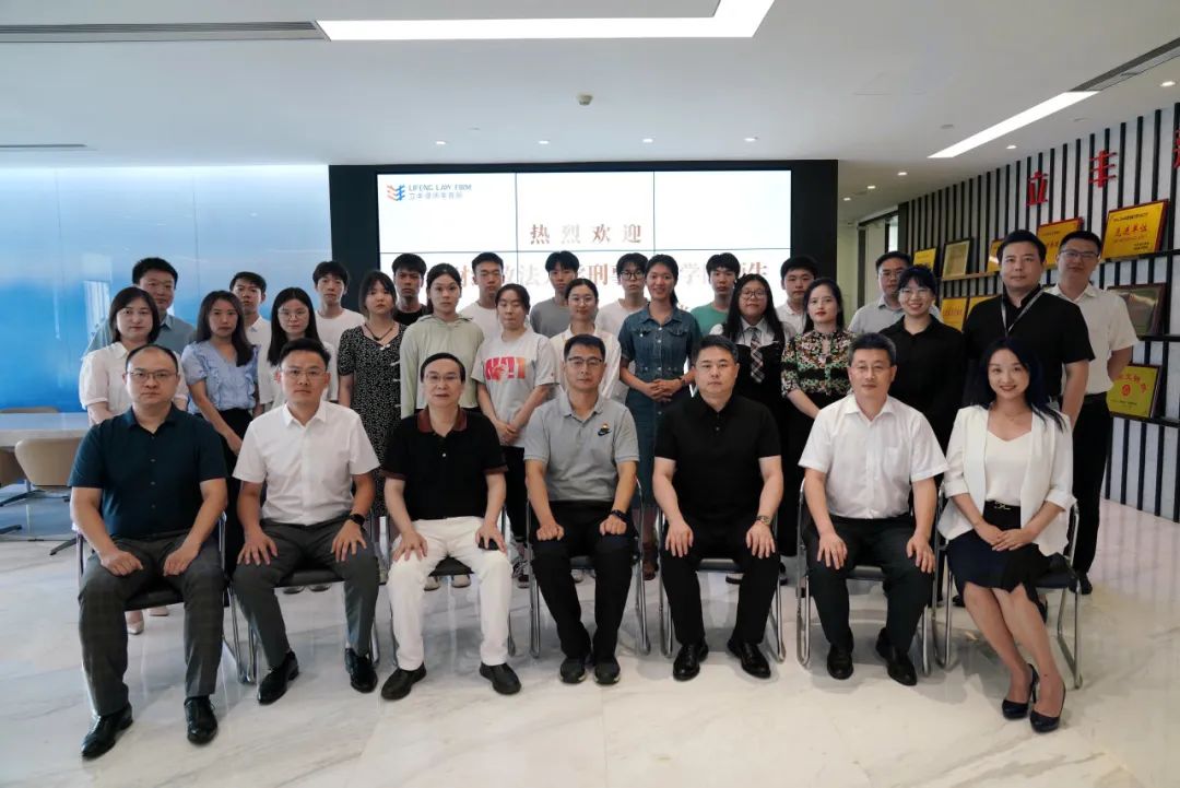 为加快推进高素质法治人才培养,增强校企合作,搭建高校与律所之间双向交流平台,2023年7月3日下午,中南财经政法大学刑事司法学院党委委员、副院长郭泽强,培训中心主任、刑法学系副主任、副教授曾大庆,刘浩博士及14名学生代表莅临湖北立丰律师事务所(以下简称“立丰所”)开展交流座谈会,并举行“刑事司法卓越人才培养基地”授牌仪式。