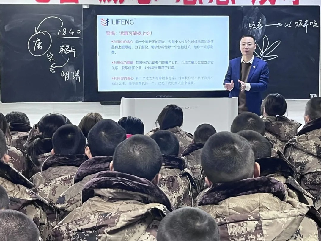 2023年11月12日9:30-11:00,湖北立丰律师事务所(以下简称“立丰所”)高级合伙人、监事会副主席、刑辩与合规研究院副院长汪群,合伙人、刑辩与合规研究院秘书长戚萌,刑事法律专委会委员、第五届“立丰杯”最佳辩手林晨阳三位律师应邀为赤壁市三国青少年成长学校培训授课。本次授课主题为“毒品普法教育宣传”,三位律师普及了毒品相关法律知识,鼓励青少年树立正确的法治观与价值观。该校近百位师生参与了学习与旁听。