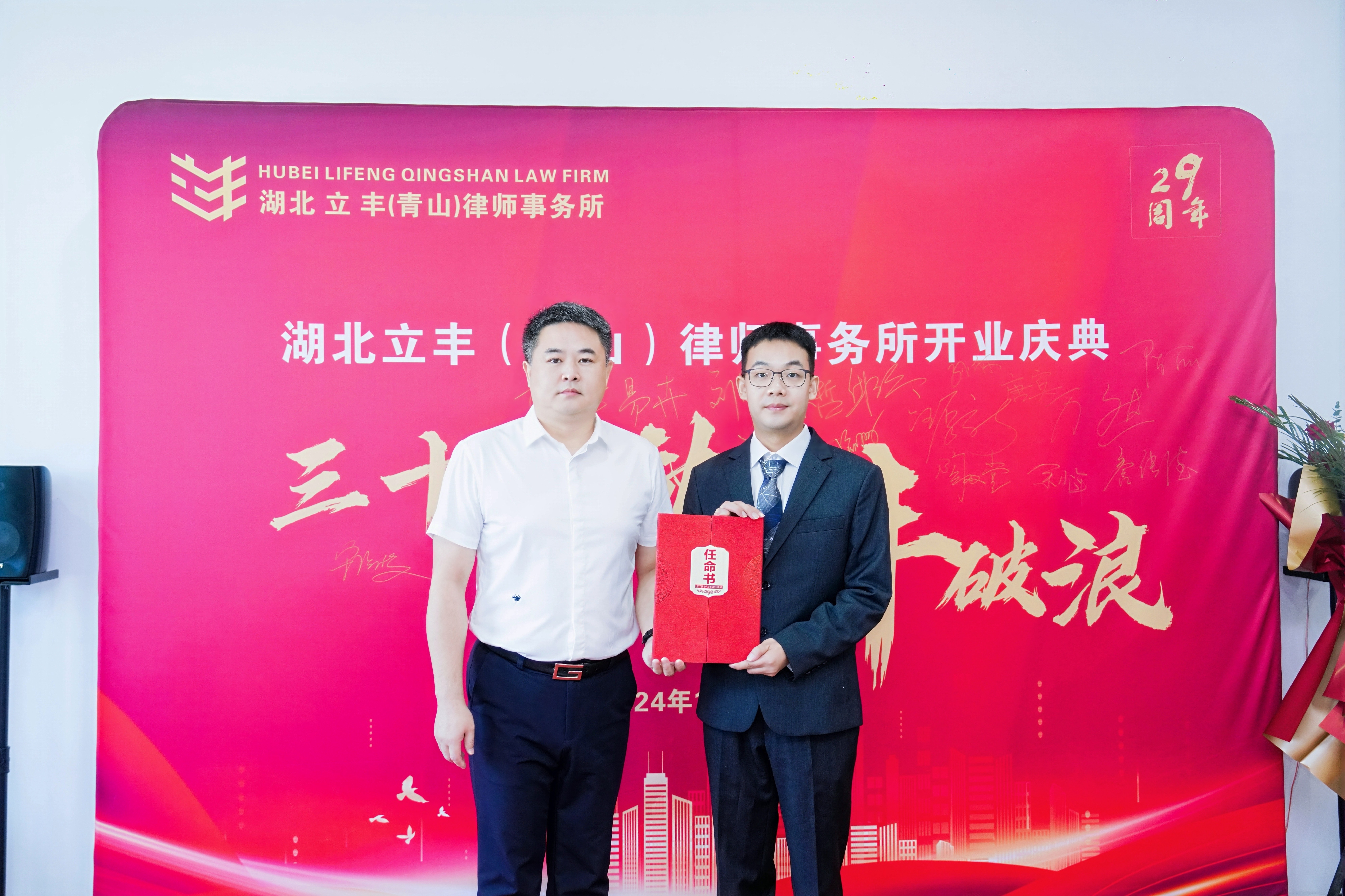 2024年,正值立丰所三十周年庆之际,立丰青山分所作为立丰所设立的第一个同城分所,是立丰所发展的一个重要里程碑,是立丰所进一步提升品牌影响力、拓展市场资源的重要发展战略,立丰所正以一流服务效率与质量朝着打造更加辉煌的立丰律师品牌的目标奋进。