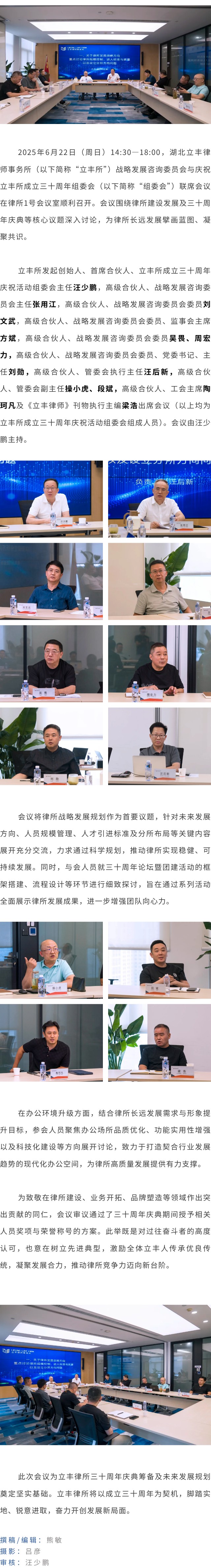 立丰所战略发展咨询委员会与庆祝律所成立三十周年组委会联席会议顺利召开
