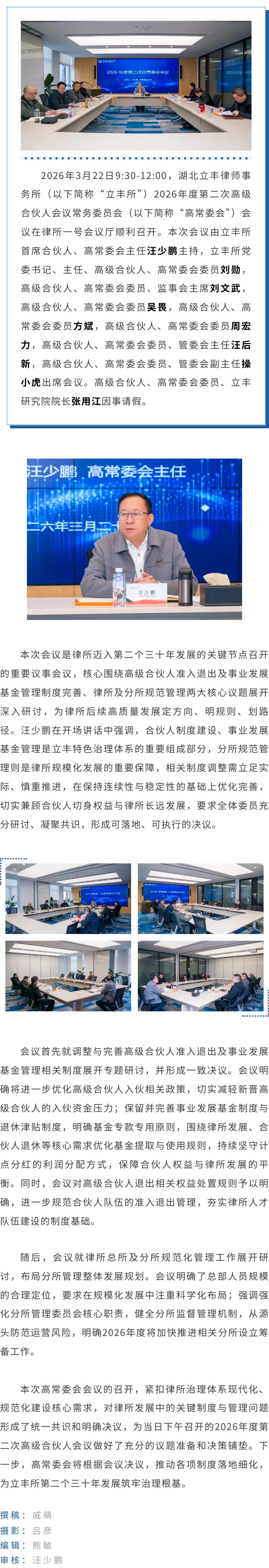 立丰所召开2026年度第二次高级合伙人常务委员会会议