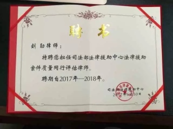 副主任刘勋受聘司法部法律援助中心同行评估律师